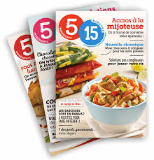 Chaque mois, je reçois une revue. Elle propose une foule d’idées de recettes simples et inspirantes qui sont en majorité préparées à base de 5 ingrédients et qui se préparent en 15 minutes. Cette revue comporte aussi une section présentant de nouveaux produits sur le marché.